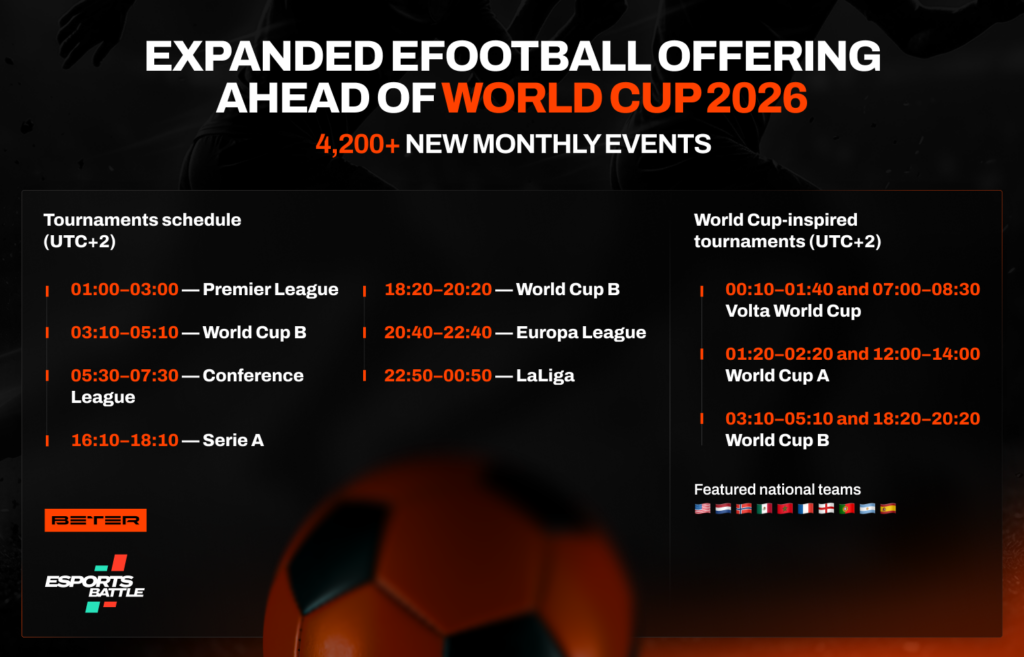Adam Conway, General Manager of the Esports Business Unit at BETER, said: “World Cup 2026 is the pinnacle of football excitement, and it presents an incredible opportunity for operators to keep fans and bettors engaged around the clock. Our expanded eFootball offering is designed to capture that energy, with content built to mirror the drama, intensity, and rivalries of the tournament.